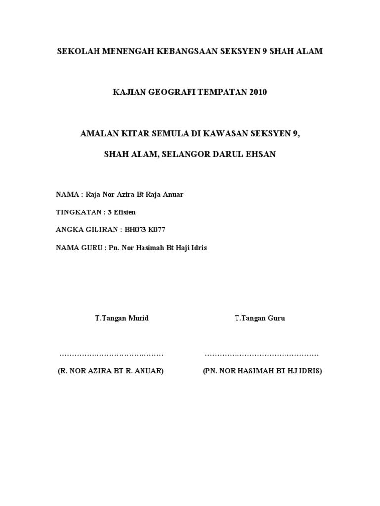 Kerja lapangan geografi tingkatan 3 1. Kerja Kursus Folio Geografi Tingkatan 3. 0 ratings 0 found this document useful 0 votes 2K views 9 pages.